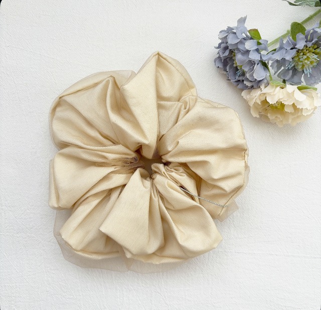 ○ビッグシュシュ◯ 大きめサイズが魅力のビッグシュシュ。 実際に付けた時にほどよいボリューム感になり、とてもかわいいです。 シュシュががヘアゴムやピンを隠してくれるのでお団子ヘアなどにもおすすめ。 ヘアアレンジが苦手な方でも手軽ににオシャレを楽しんでいただけます。 前から見た時や、ちょっと横を向いた時に、シュシュがチラッと見えるのもビックシュシュならではの可愛さです。 size:直径 約18cm 素材:オーガンジー |maaaban| maaaban(マーバン)のこだわりは 幅広い方に手にとっていただけるようなシンプルかつ存在感のあるものを作るように心がけています。 『くらしのワンポイントであなたの生活を彩れる』ようなそんな存在になりたい。 そう思いながら一つ一つ丁寧に心をこめて作らせていただいています。 あなたのお気に入りが見つかりますように・・・