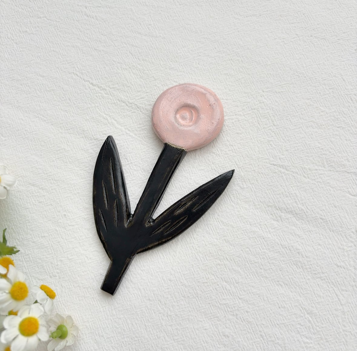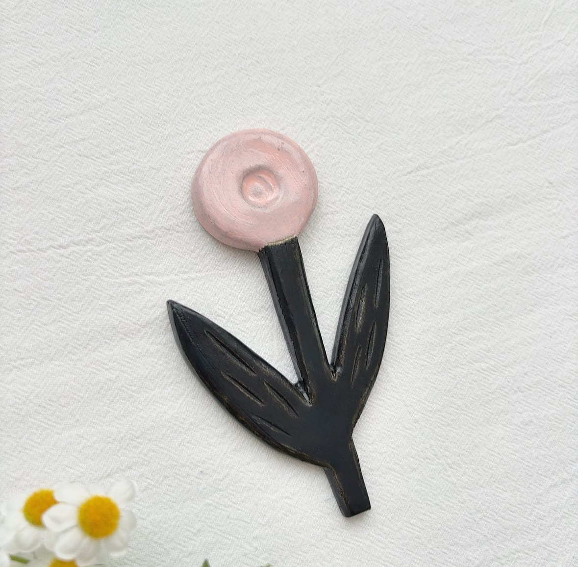陶土で作られたお花の壁掛けオブジェ。