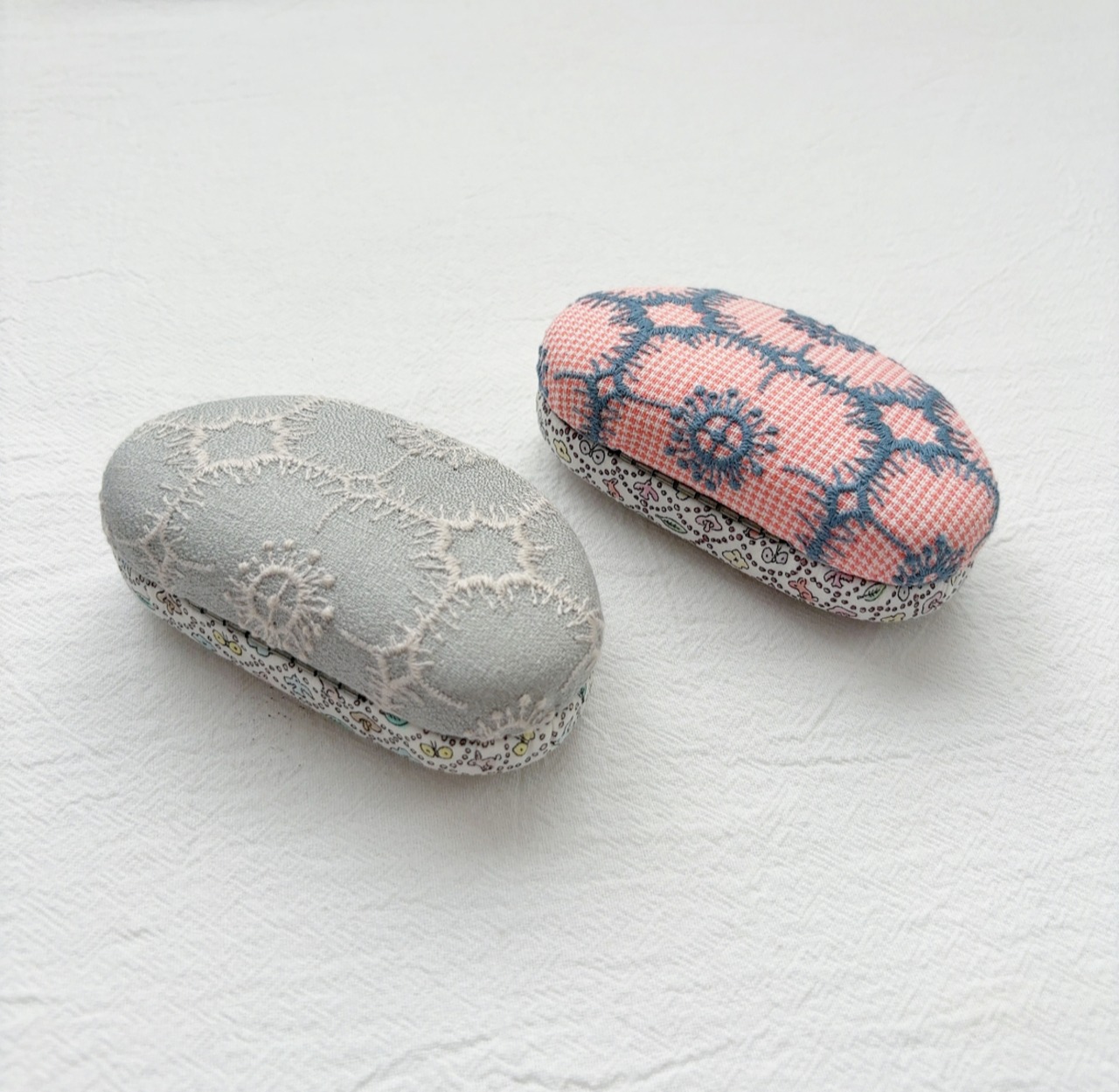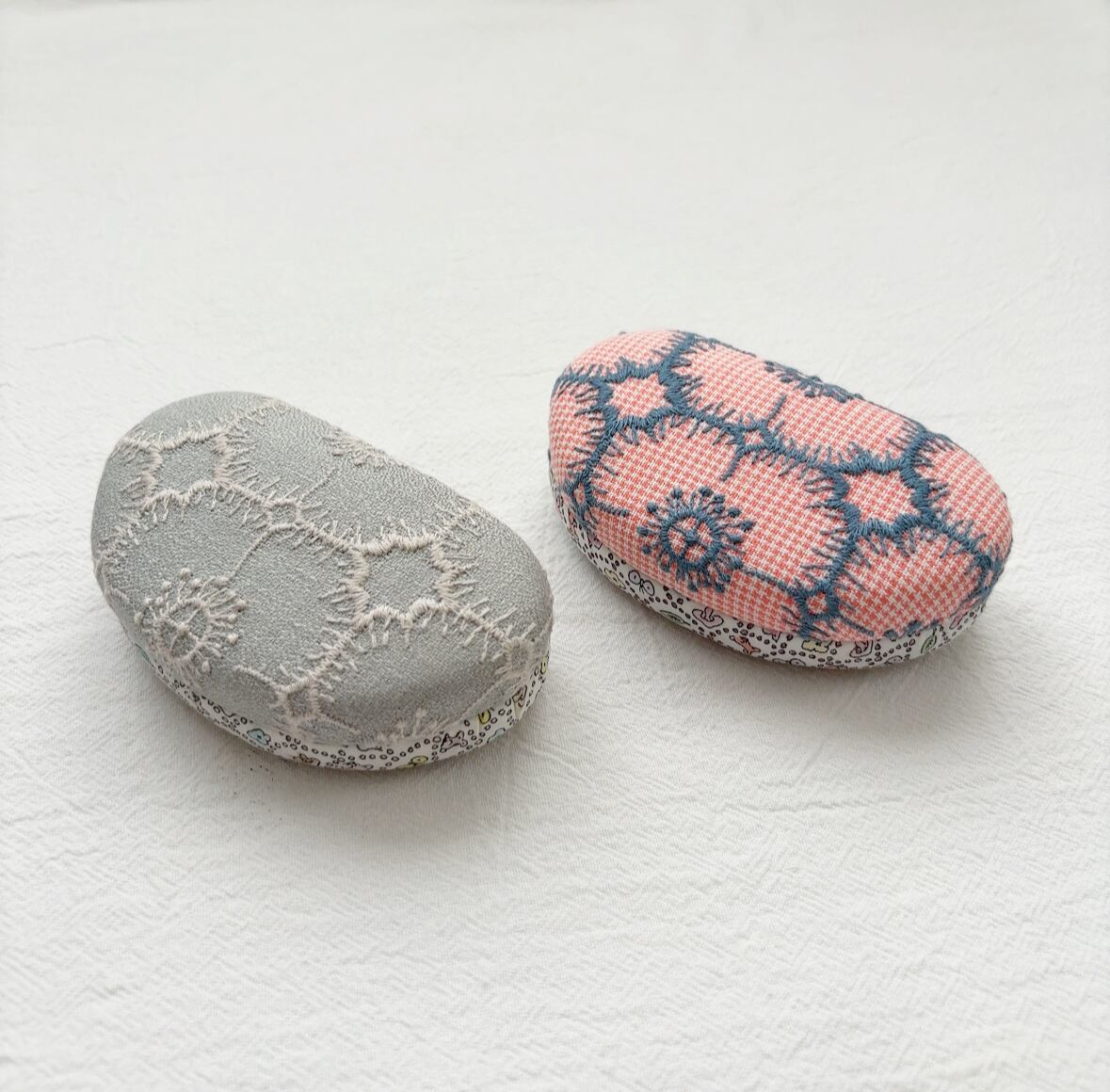 ミナペルホネンの生地を使用して作られた小物入れ。