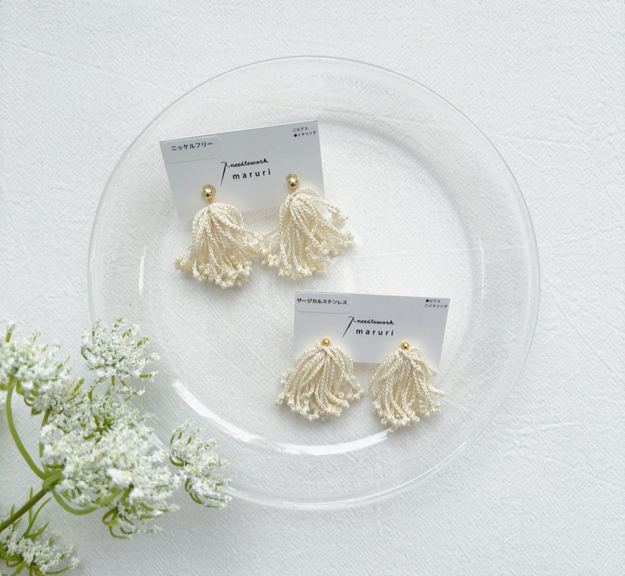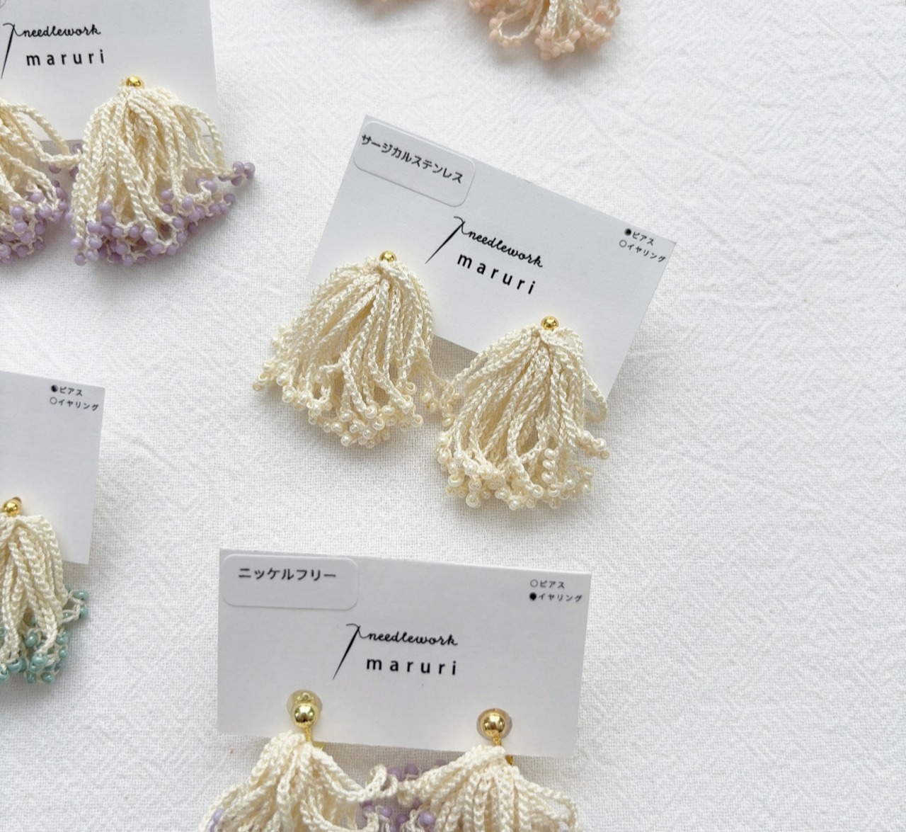そんなアクセサリーを作りたいと思い、ひと針ひと針...心を込めて作っています。