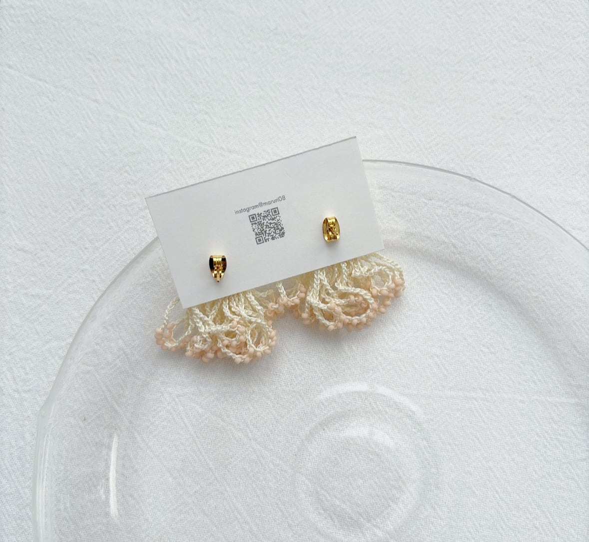 海をぷかぷか泳いでいる海月(クラゲ)をイメージして作られた耳飾り。