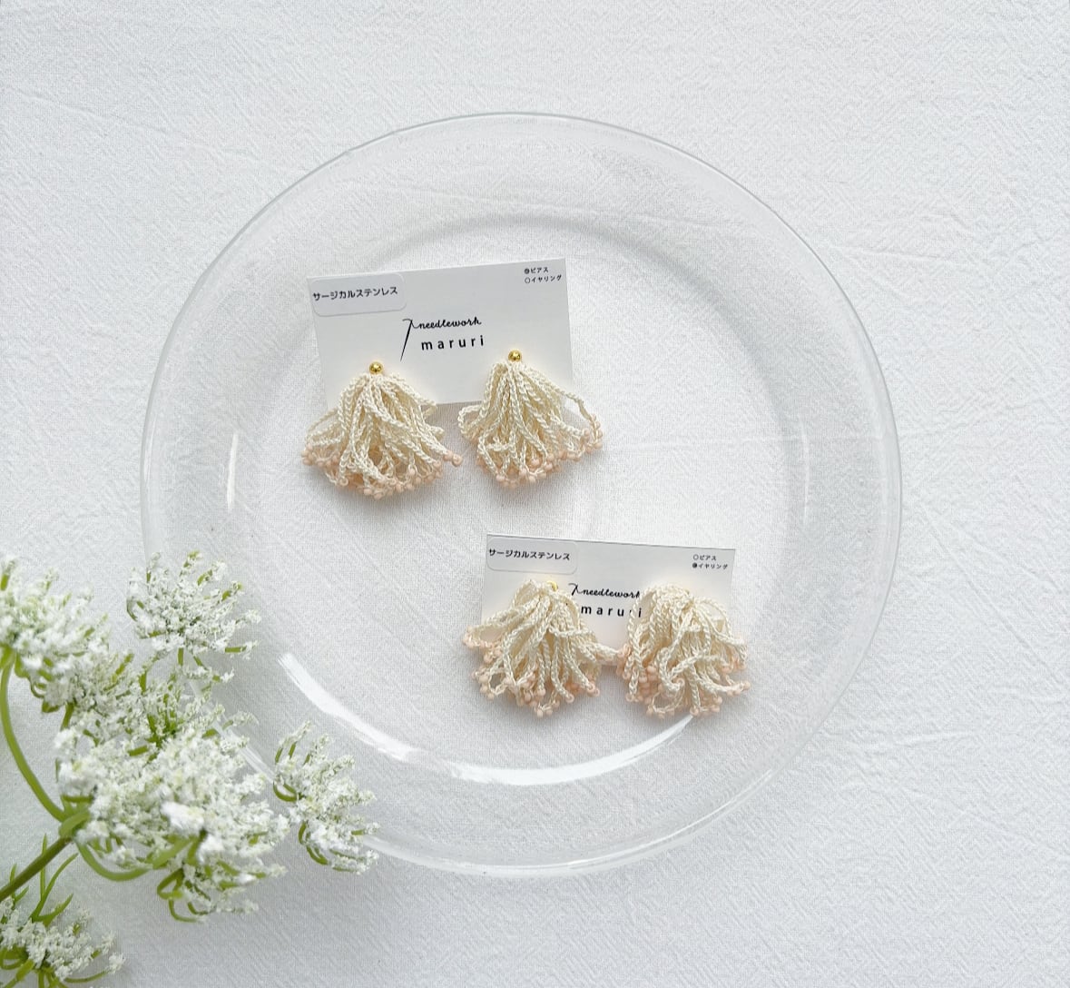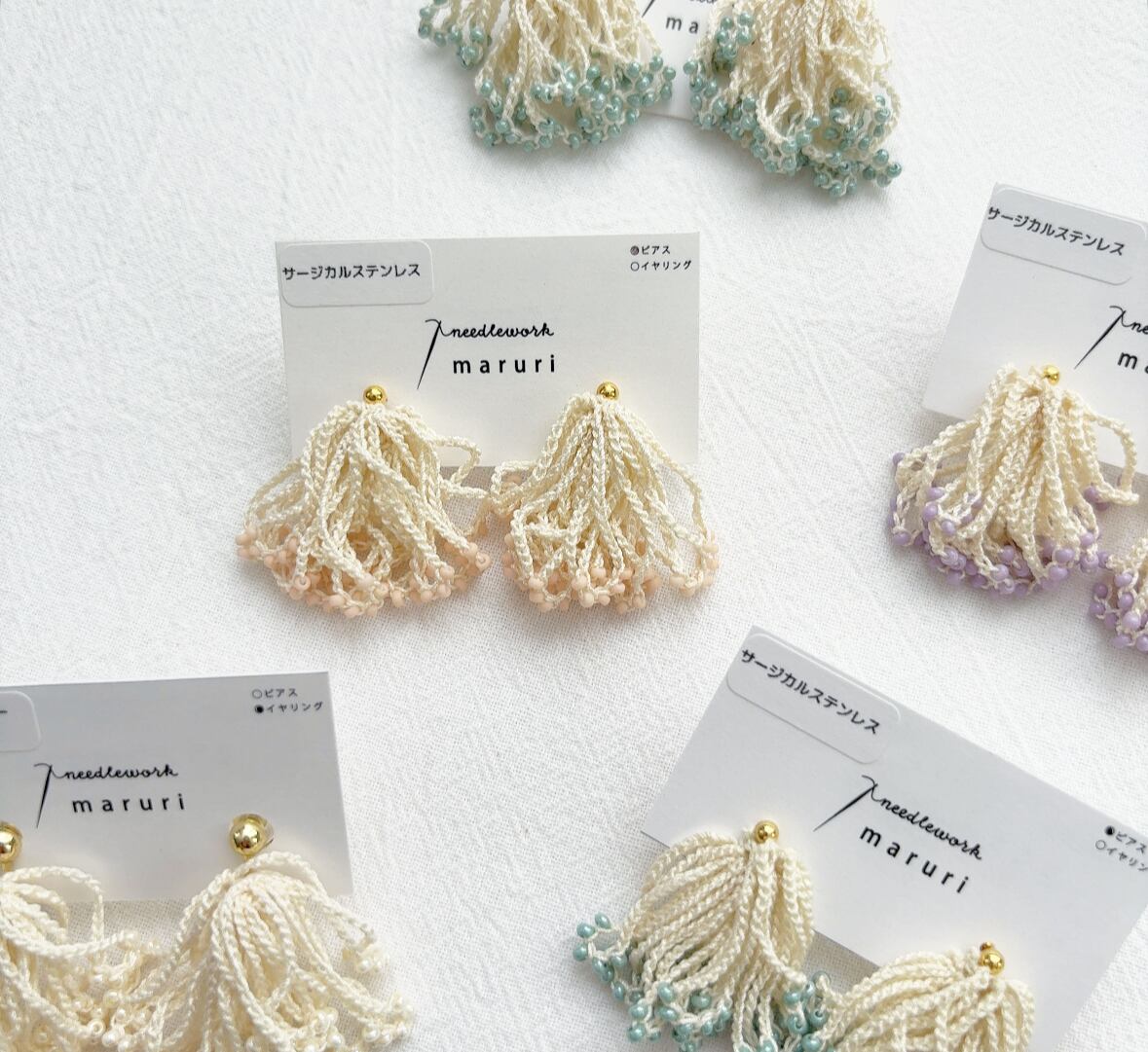 そんなアクセサリーを作りたいと思い、ひと針ひと針...心を込めて作っています。