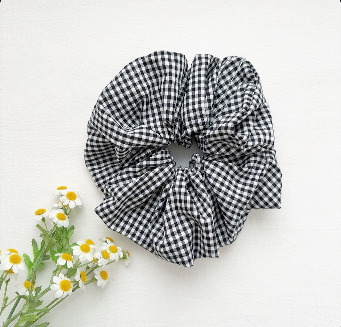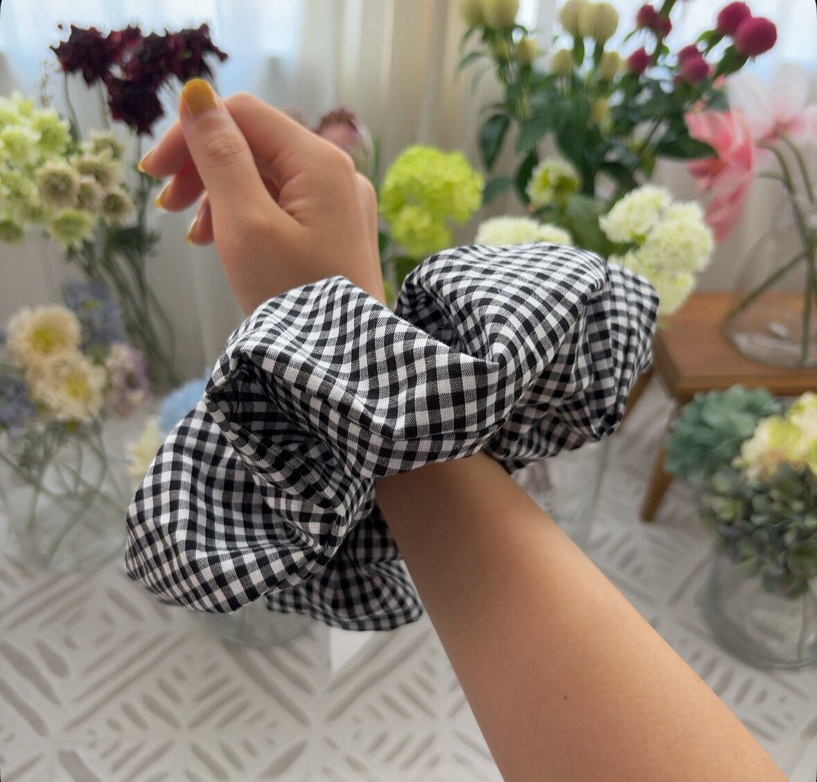 前から見た時や、ちょっと横を向いた時に、シュシュがチラッと見えるのもビックシュシュならではの可愛さです。
