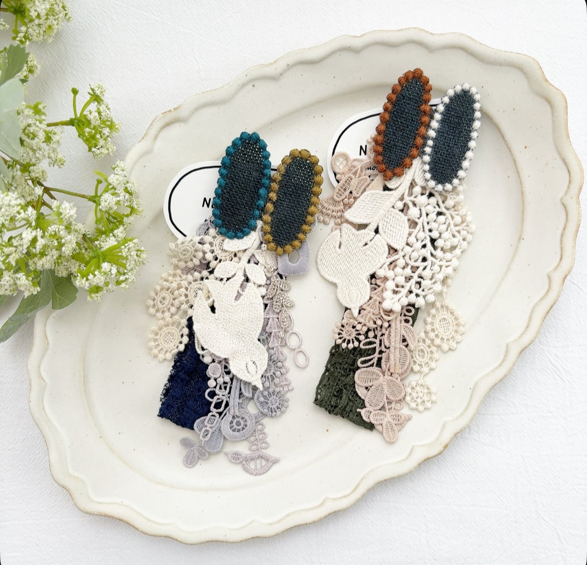 主にお花・ちょうちょ・トリなどのモチーフを手刺繍で制作し、異素材のものとミックスしてアクセサリーを作っております。