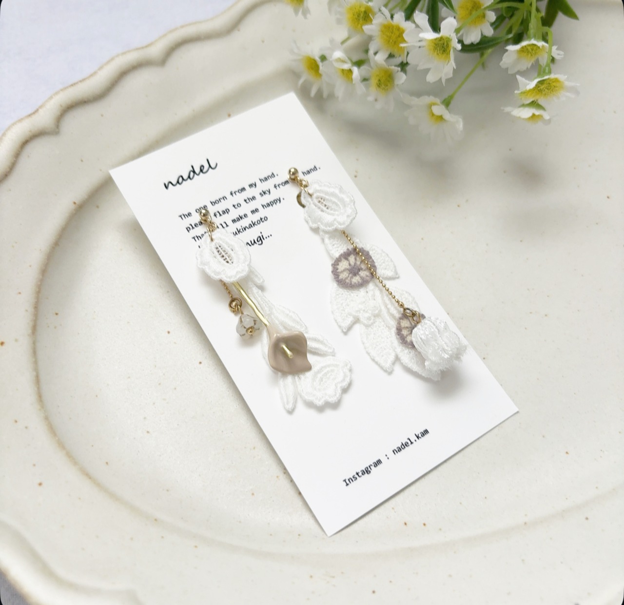 ひとつひとつデザインが違うので、世界に一つだけの特別な耳飾りです。