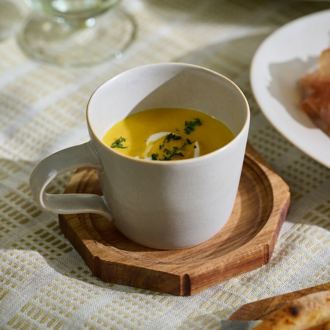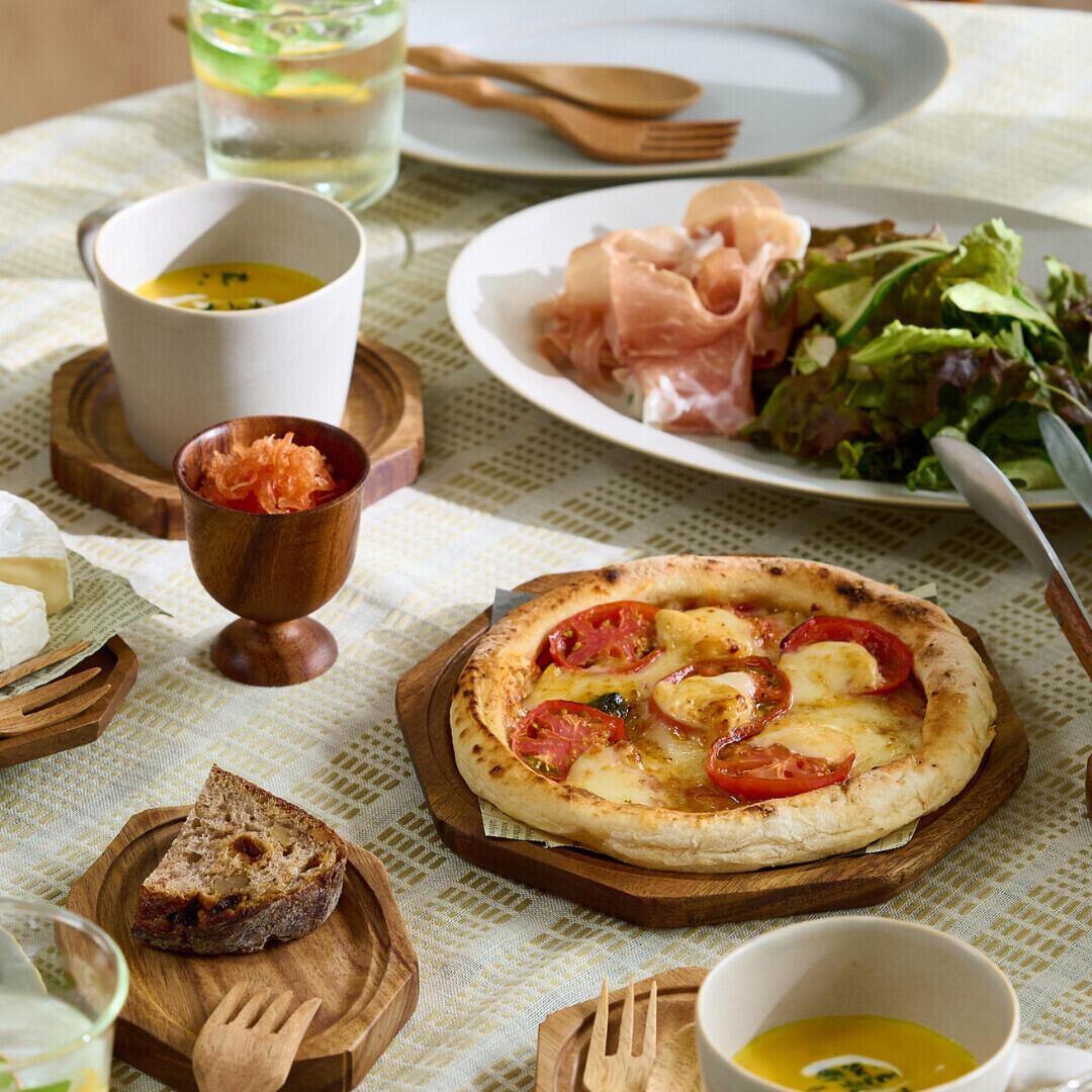 食卓に温かみとモダンな印象を与えてくれる木製のトレーです。