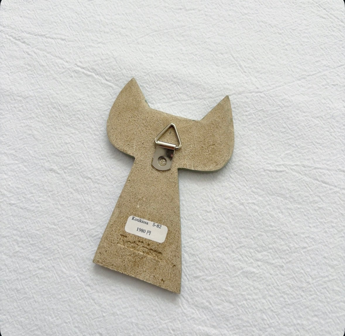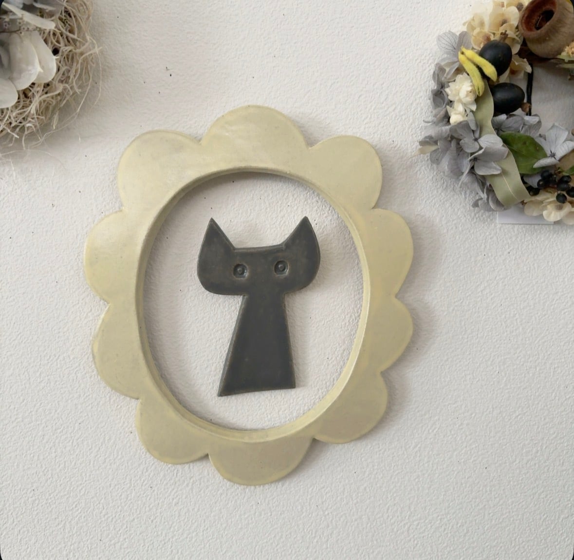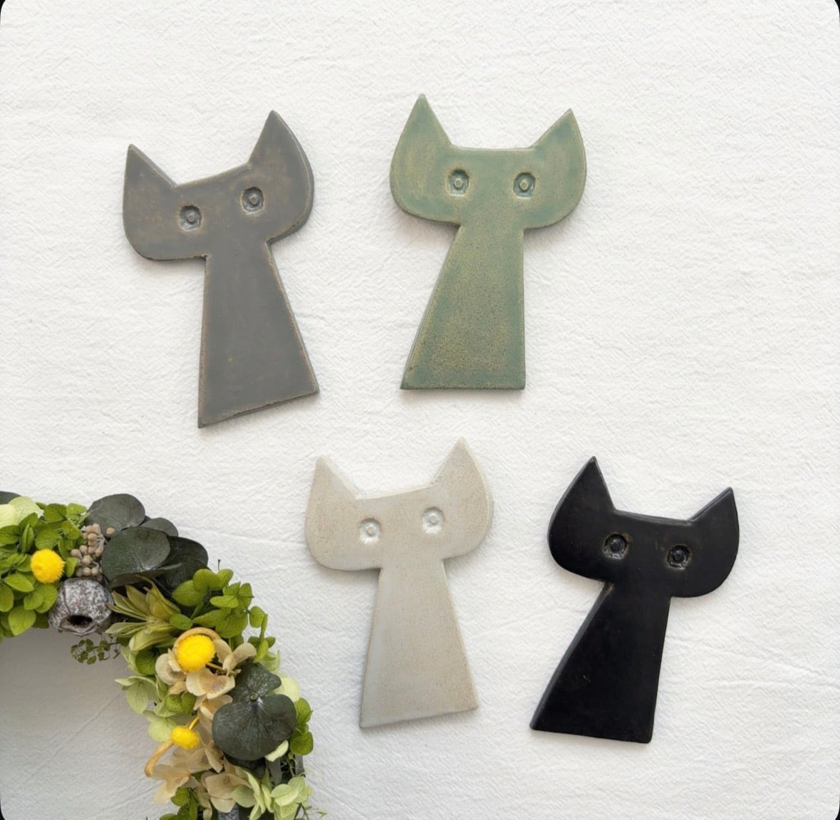 陶土で作られた可愛い猫の壁掛けオブジェです。