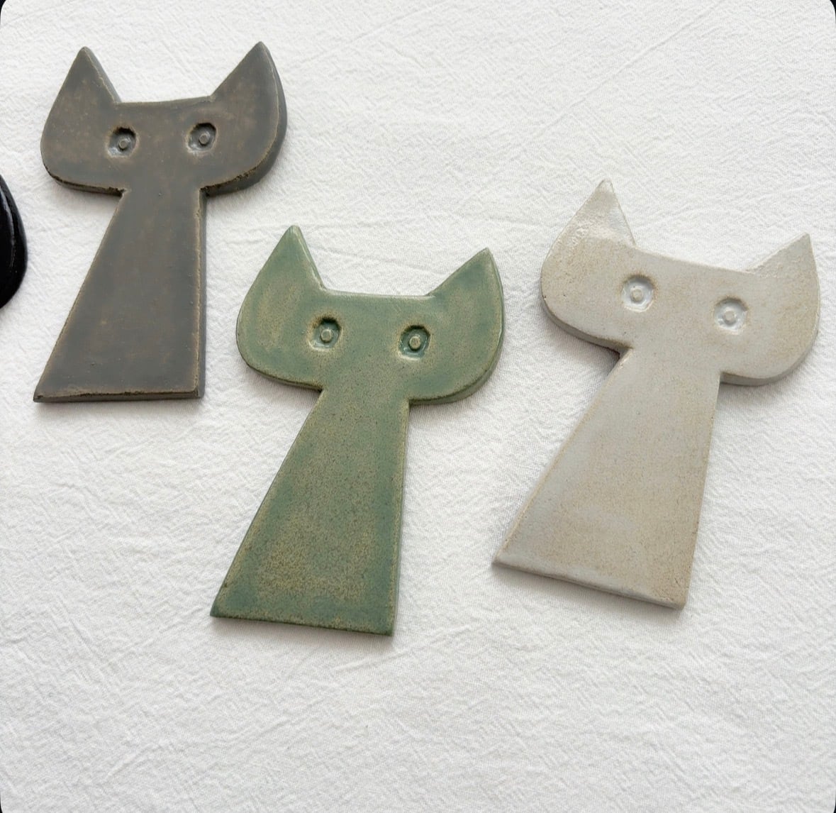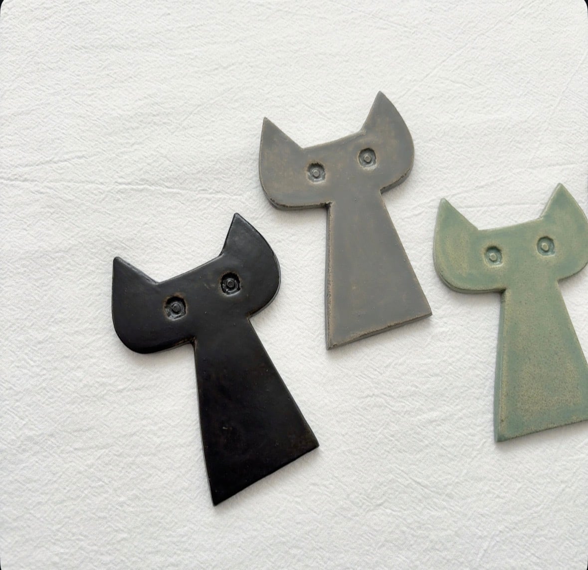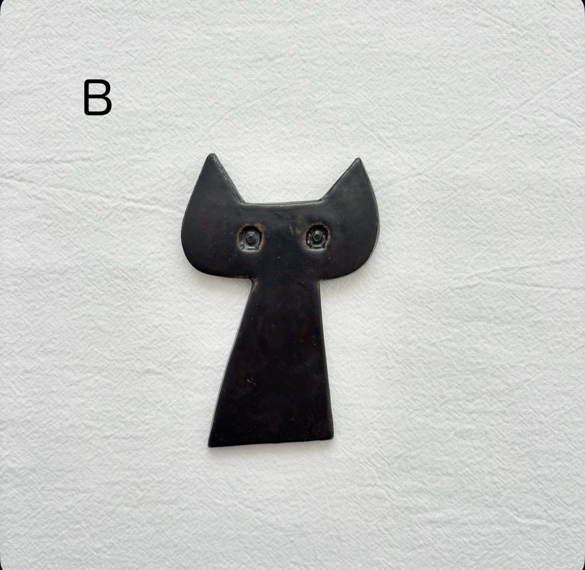 陶土で作られた可愛い猫の壁掛けオブジェです。