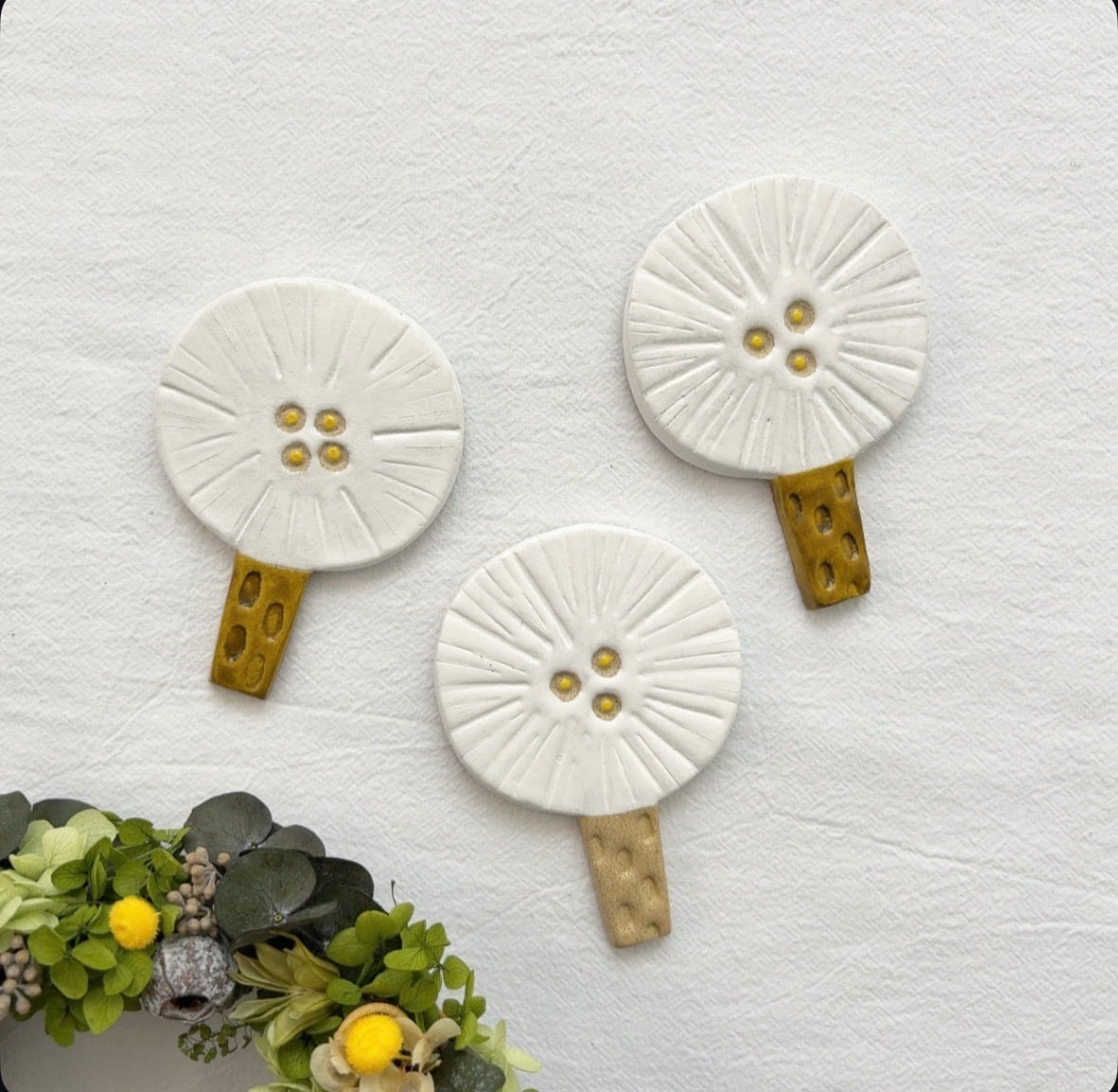 陶土で作られたマーガレットの壁掛けオブジェです。