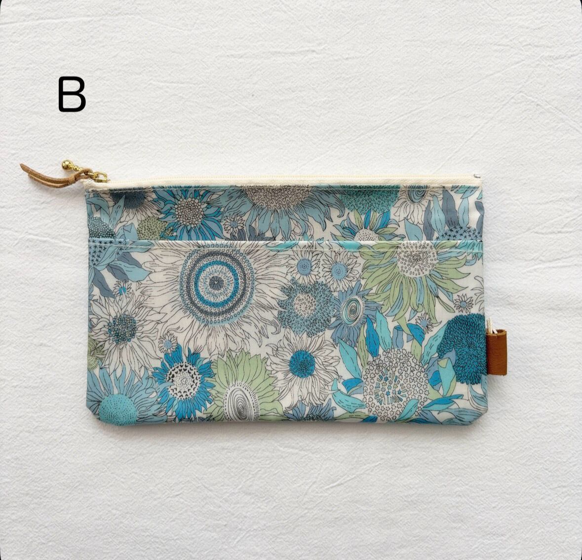 通帳やマスクの持ち歩きに便利なサイズのリバティ柄のポーチ。