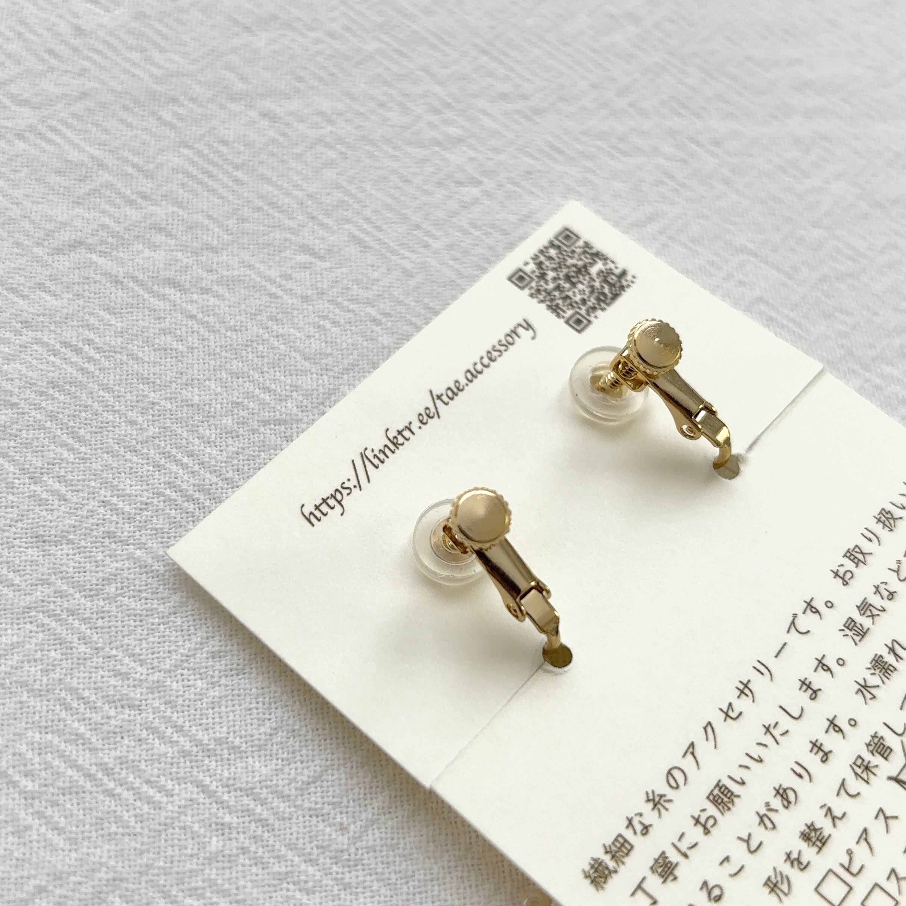 糸のやさしい素材感にガラズビーズやヴィンテージカボションなどを組み合わせた、どこかアンティークのような雰囲気の耳飾りをお届けしています。