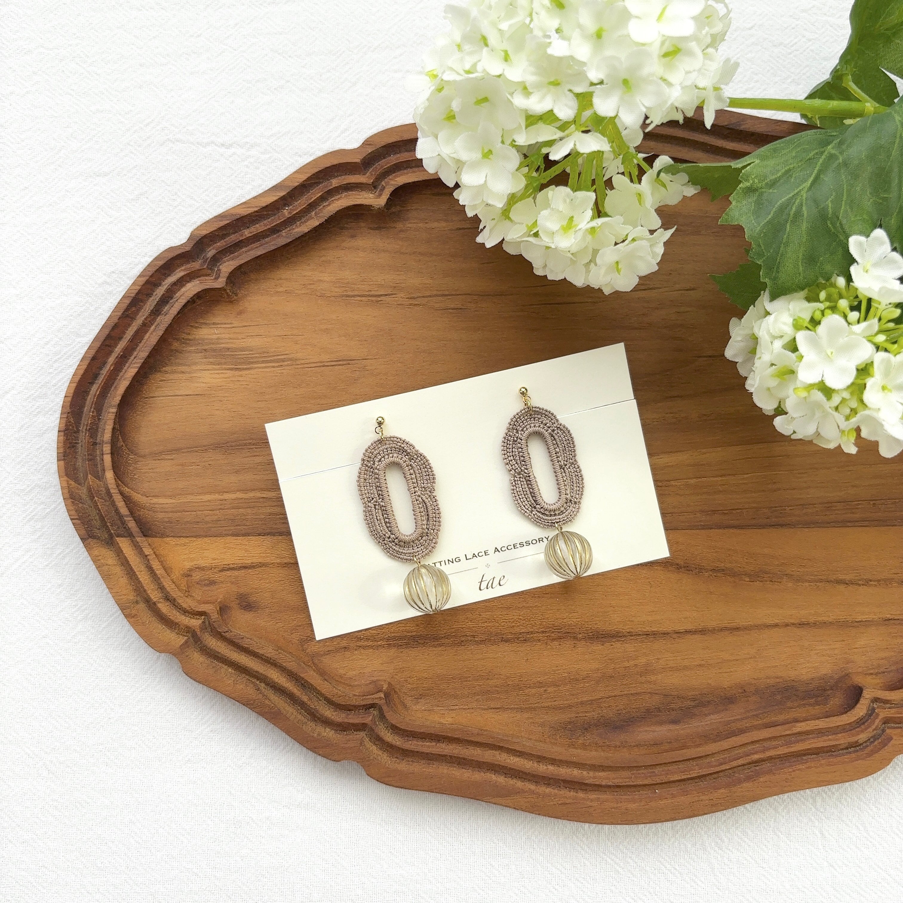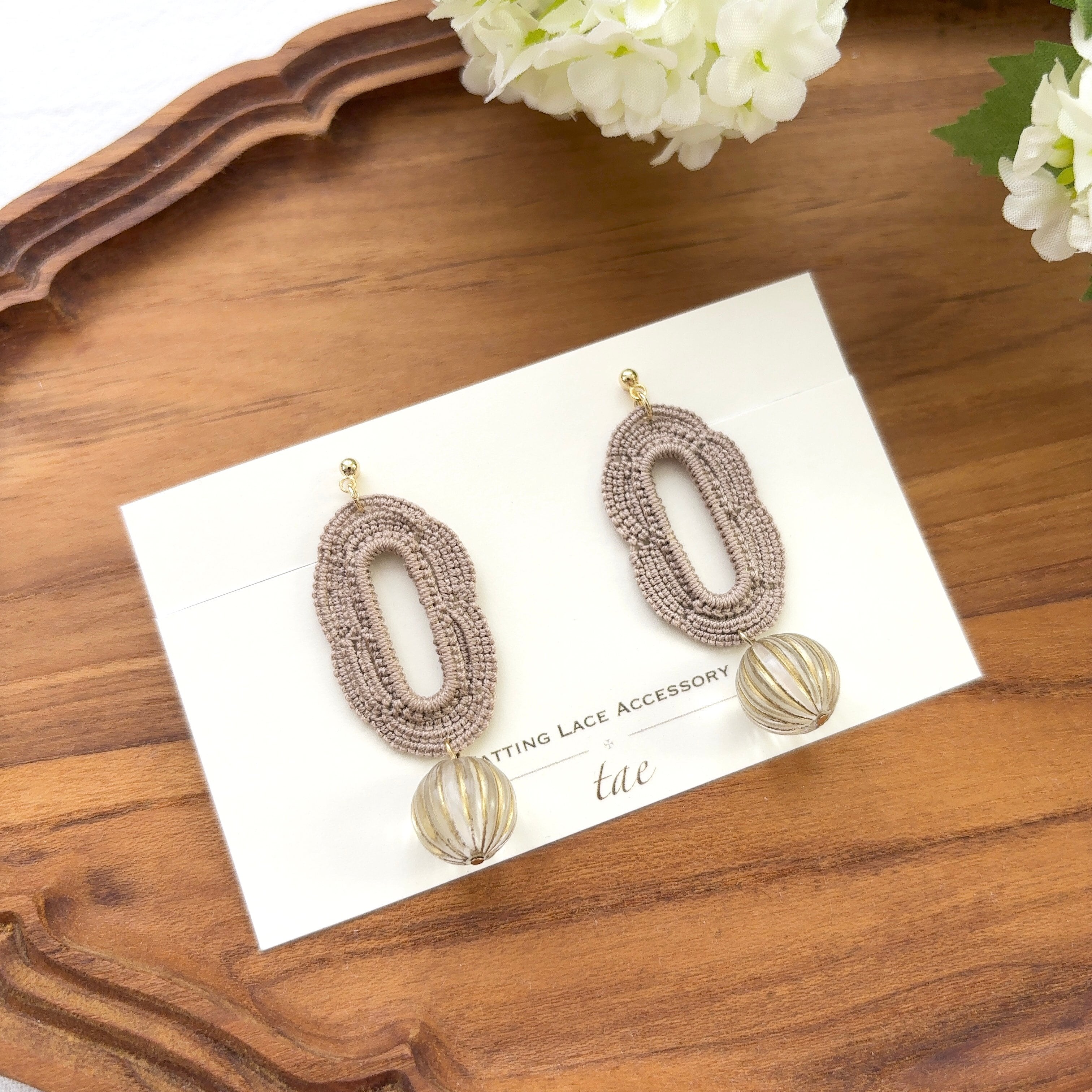 楕円のモチーフとアクリルビーズの組み合わせがユニークな耳飾り。