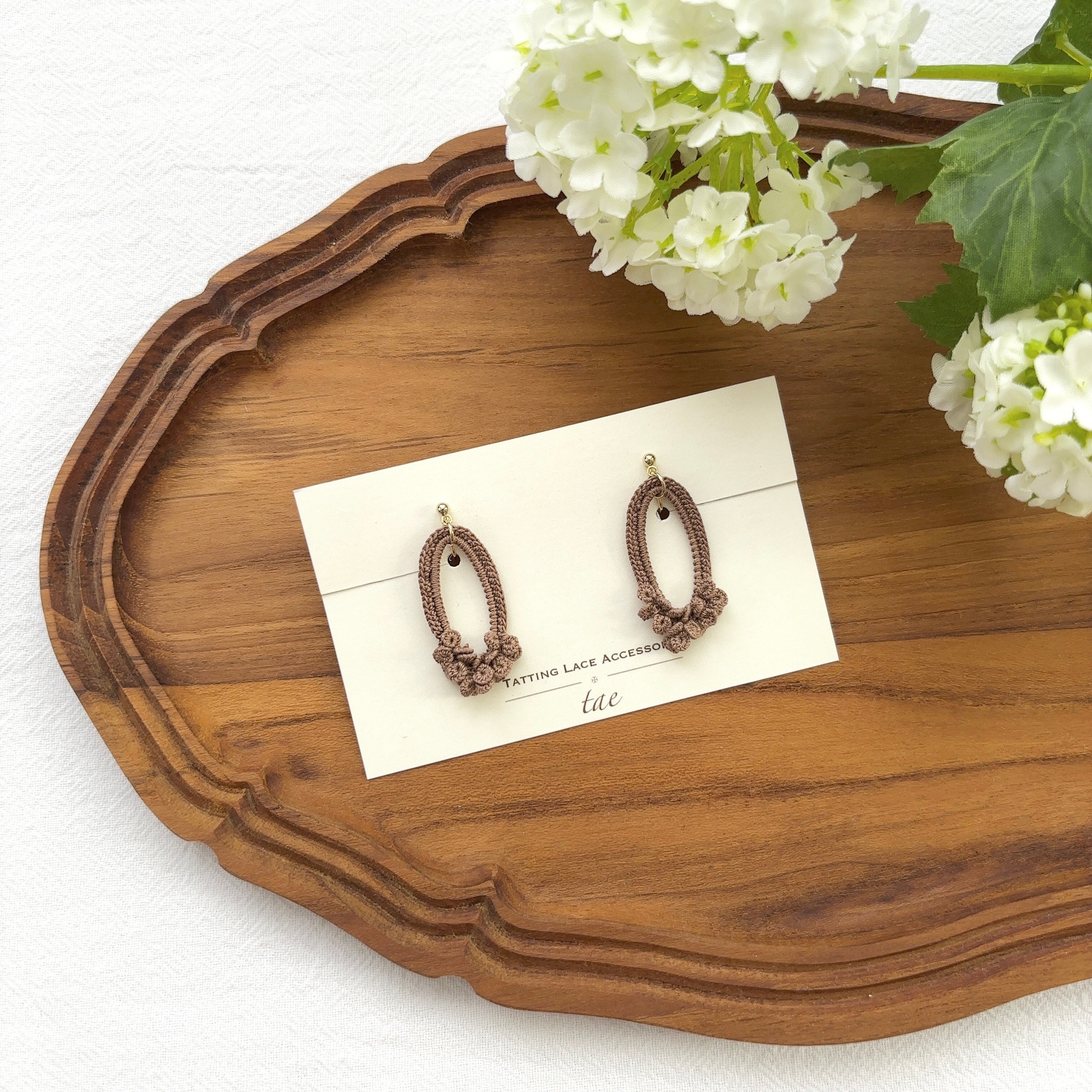タティングレースの技法で糸のアクセサリーを作っています。
