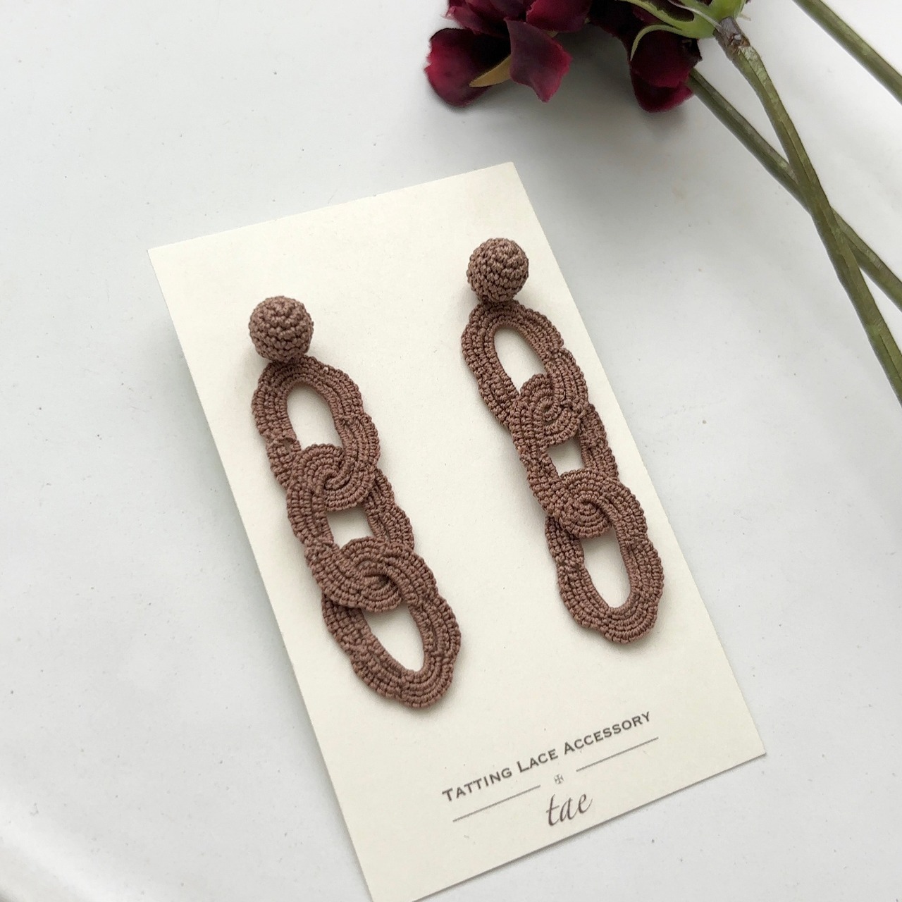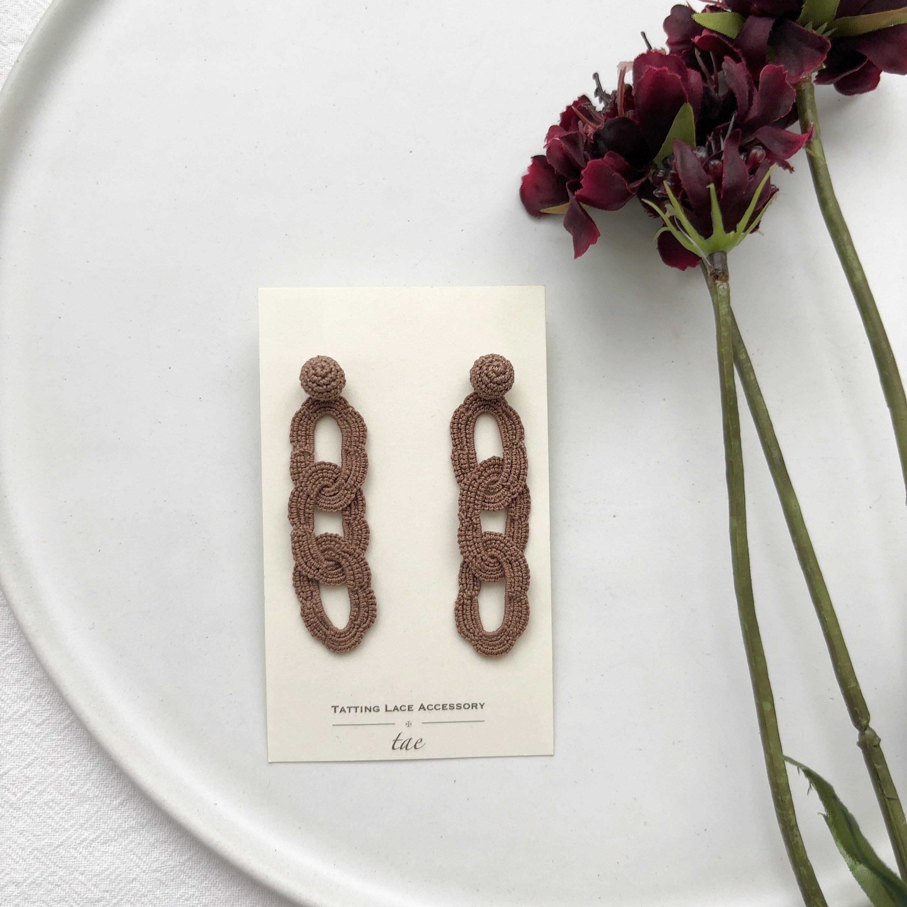 タティングレースの技法で糸のアクセサリーを作っています。