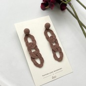 糸のやさしい素材感にガラズビーズやヴィンテージカボションなどを組み合わせた、どこかアンティークのような雰囲気の耳飾りをお届けしています。