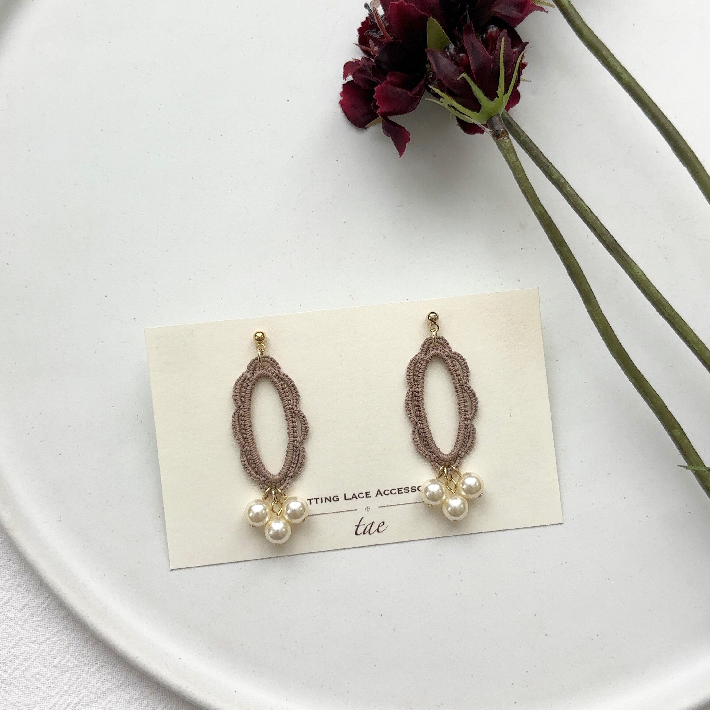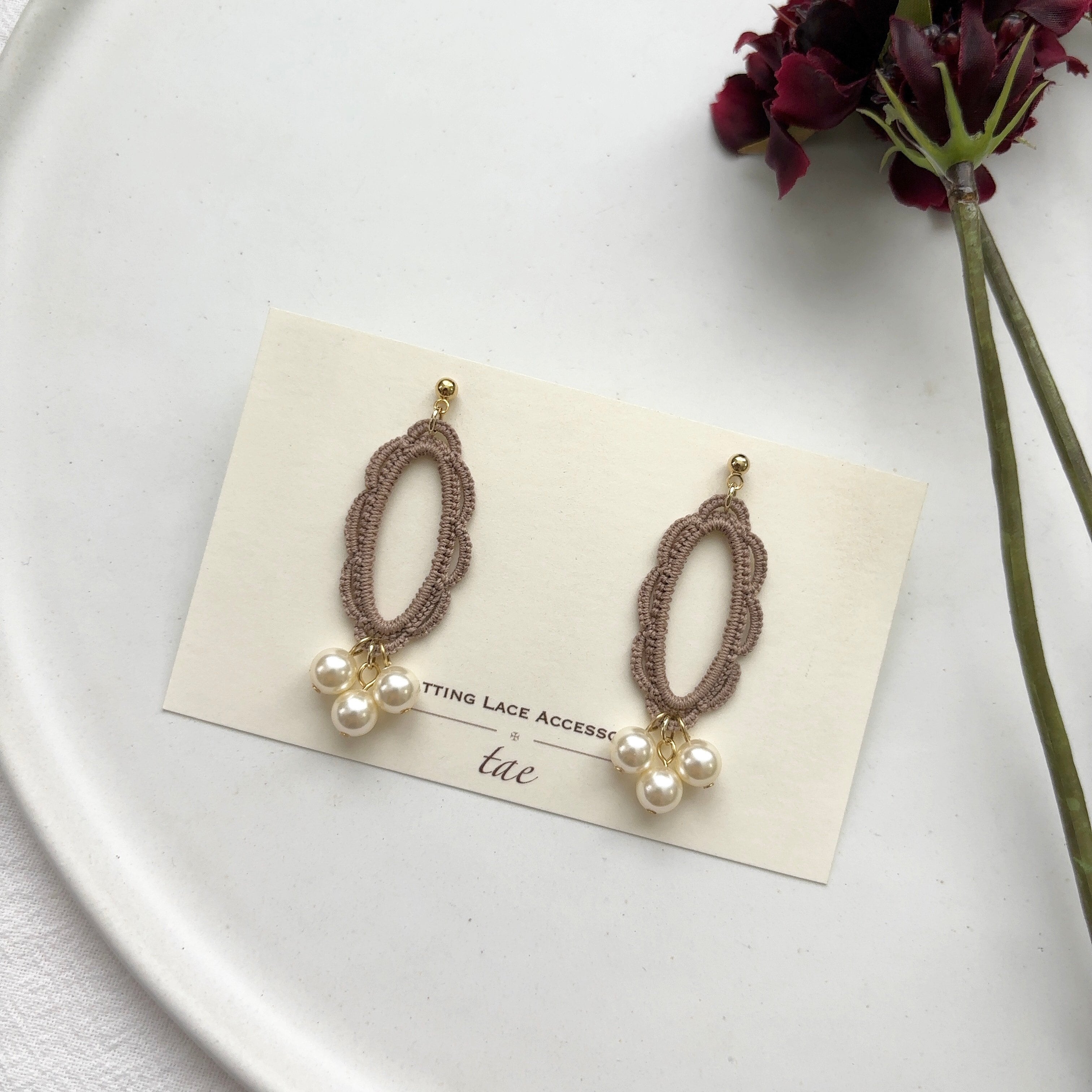 オーバル型のframeモチーフに淡水パールを合わせた耳飾り。