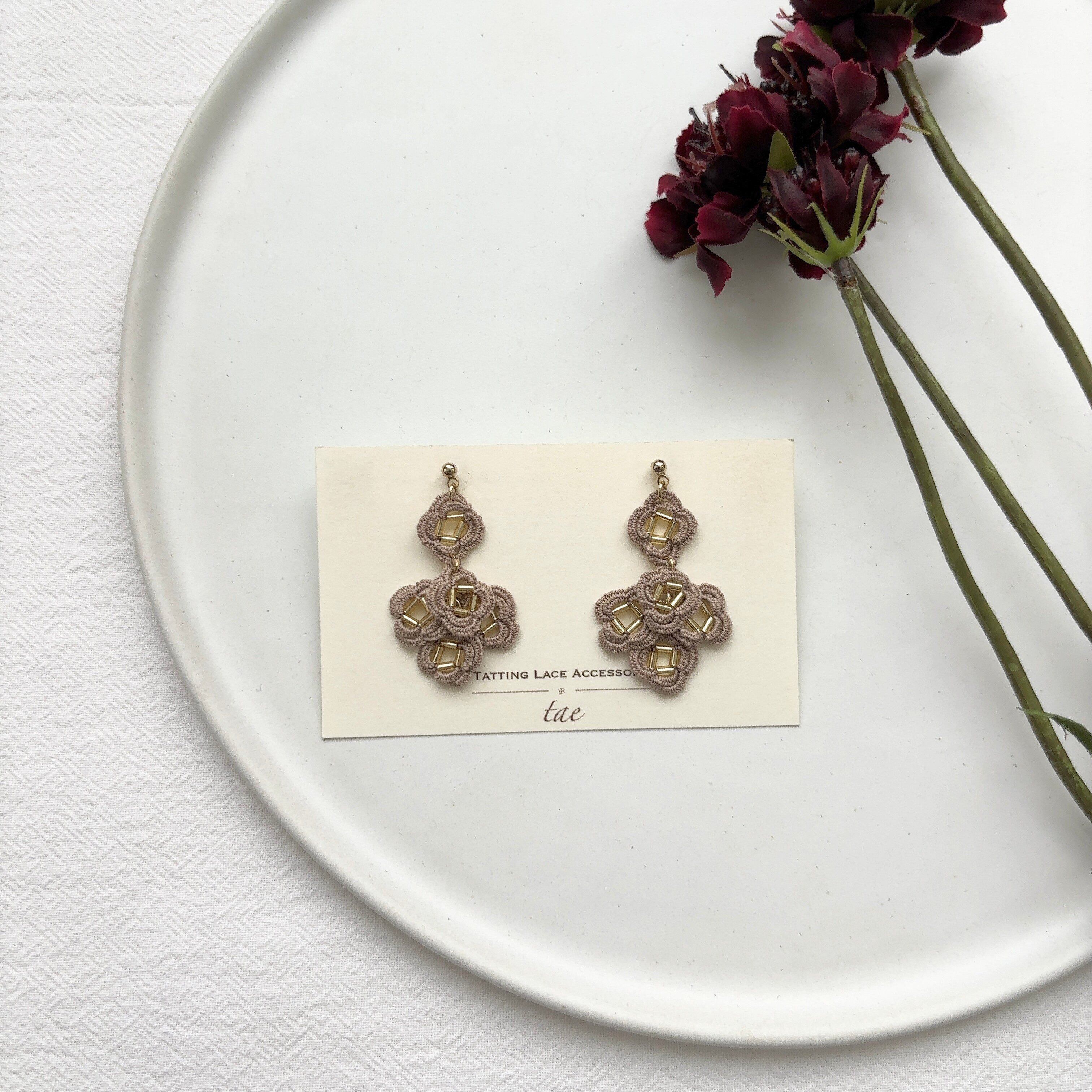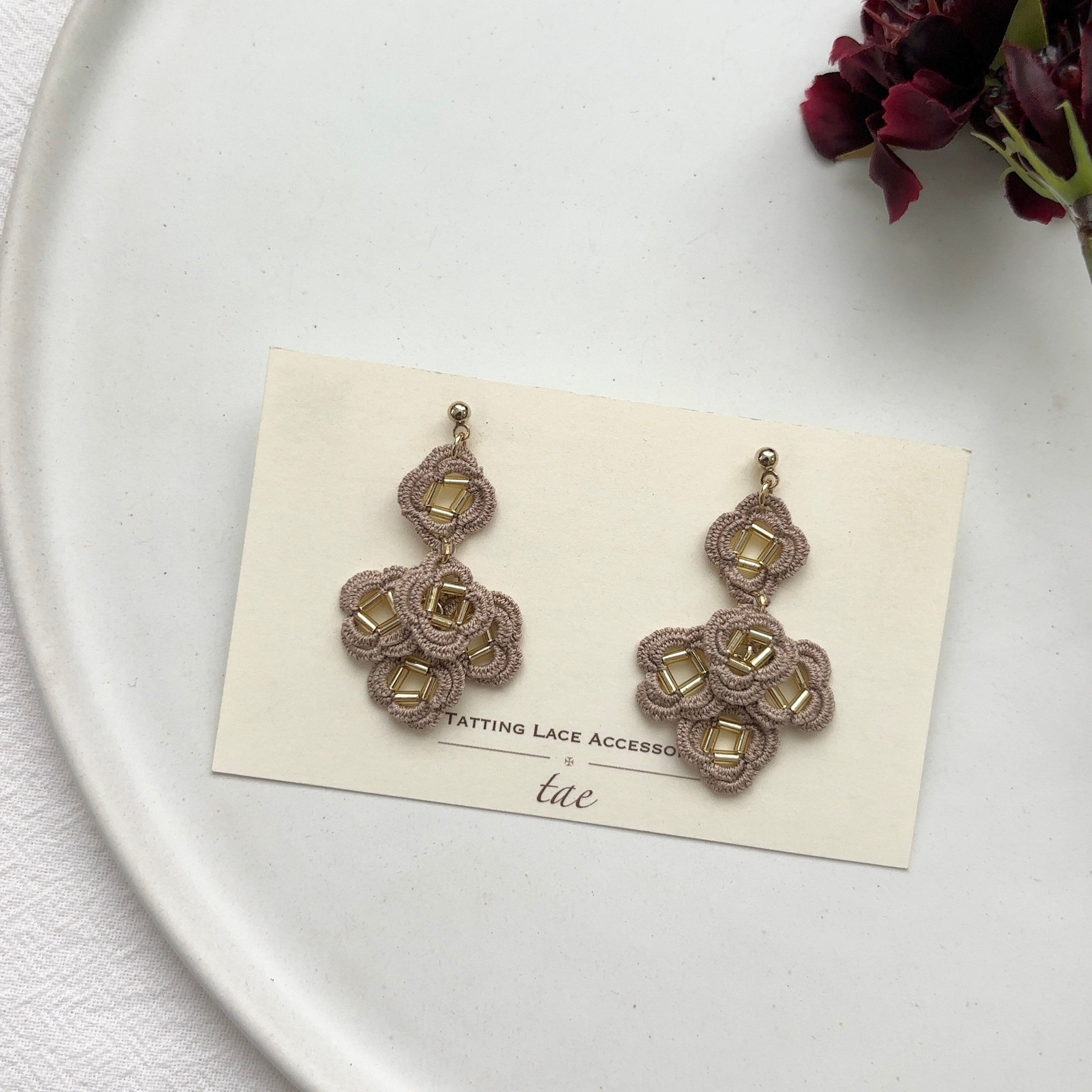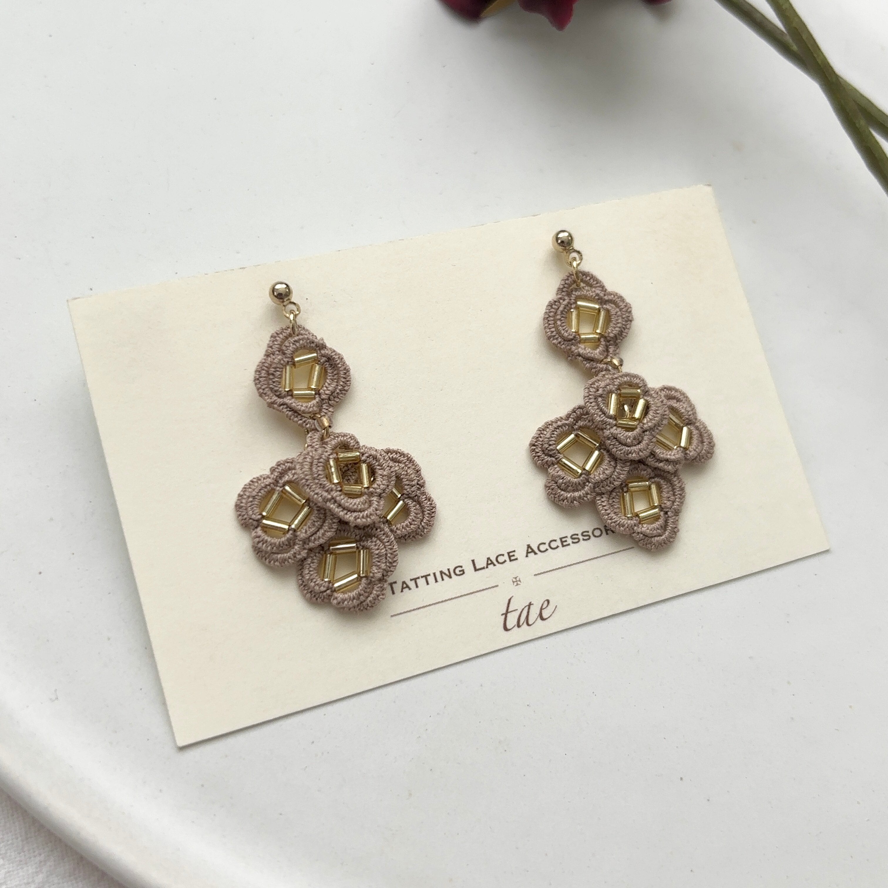 5枚の花モチーフを繋いだひらひら揺れる耳飾り。