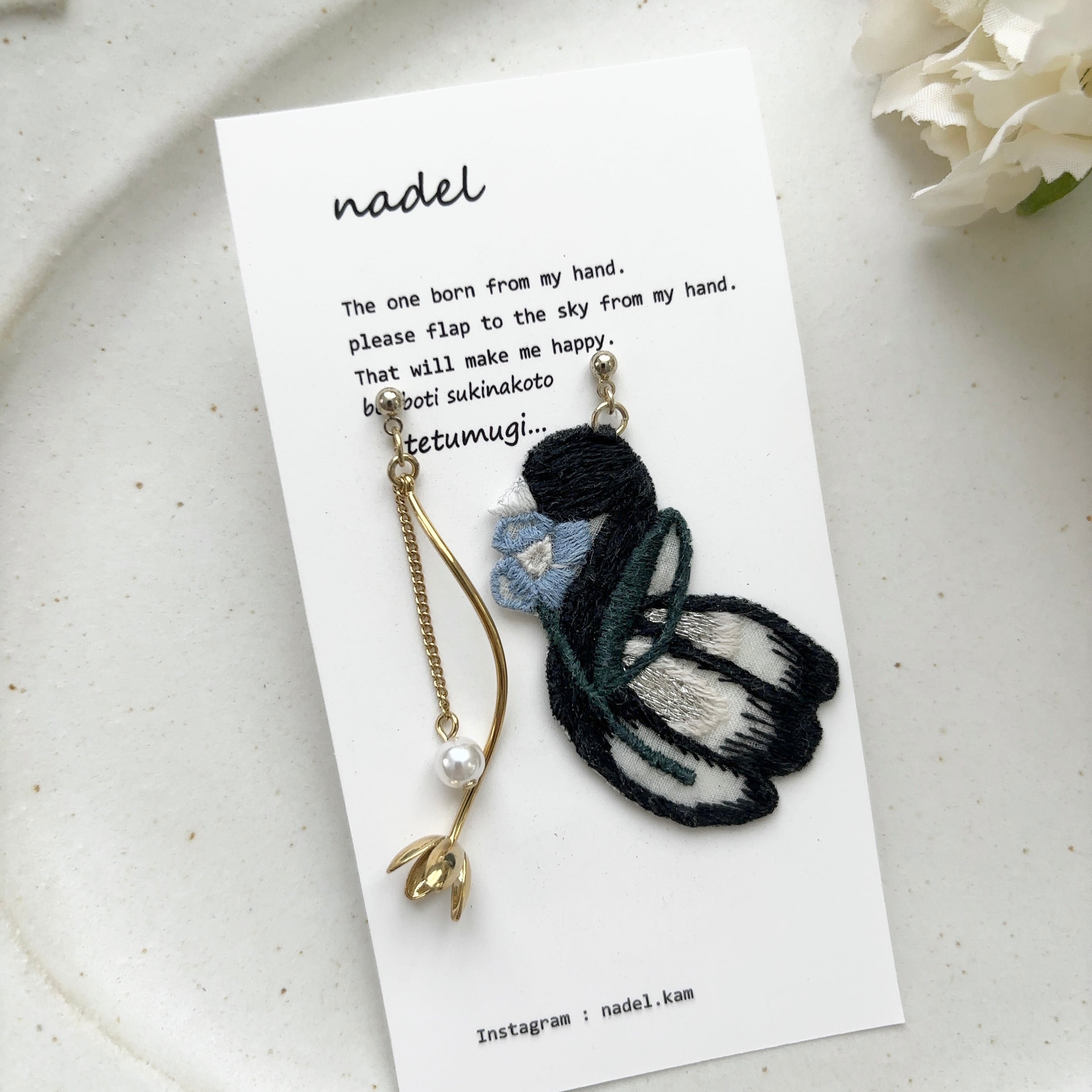 主にお花・ちょうちょ・トリなどのモチーフを手刺繍で制作し、異素材のものとミックスしてアクセサリーを作っております。